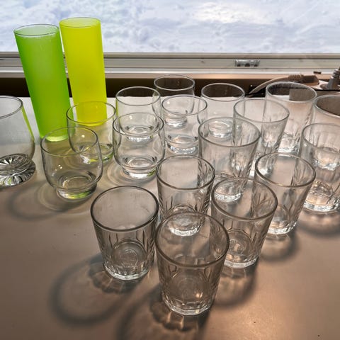 Laatikollinen (noin 9 kpl) erilaisia valaisimen suojalaseja
