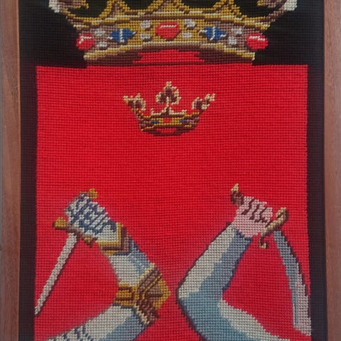 puinen seinäkoriste vaakuna-aiheella