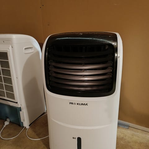 Siirrettävä ilmanviilennin sisäkäyttöön. Laitteessa on etupuolella säädettävät ilmanohjausritilät ja takapuolella irrotettava suodatin. Alhaalla on säiliö, jonne voi laittaa pakastimesta kylmäkallet viilentämään puhallusta. Mukana myös kaukosäädin.