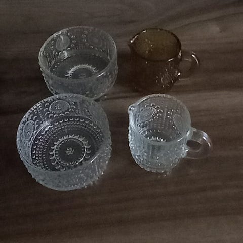 Kuvissa näkyvä, erittäin hyväkuntoinen kirkas Iittalan Nanny Stillin suunnittelema Grapponia kermakko.