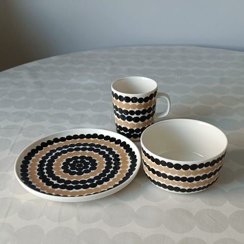 Käyttöönottopesussa ollut vaikkapa aamiaissetti. Ei käytössä.