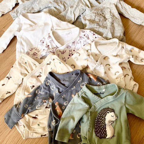 Eri merkeiltä koossa 50 pyjamia ja unipussi. Hyvässä kunnossa ja taloudessa ei eläimiä ja käytetty hajutonta sensitive pyykinpesuainetta.