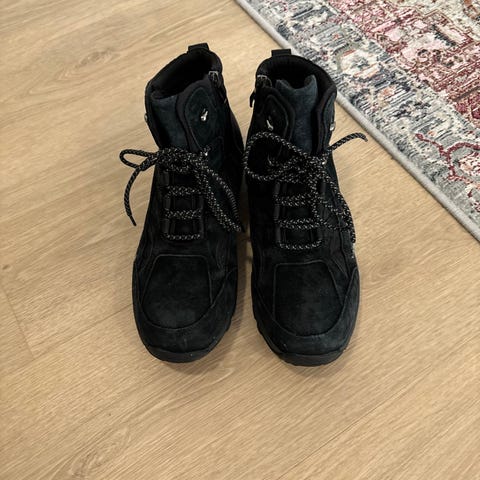 Käyttämättömät lämpöpohjalliset, suutarilta ostettu. Miesten koko 46 eli ovat pitkät (29.5 cm) ja kapeat (levein kohta 9 cm).