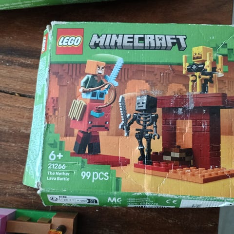 LEGO Minecraft rakennussarja. Pakkaus sisältää palikoita Minecraft-teemaisen pihapiirin ja vaaleanpunaisen possurakennelman kokoamiseen. Setissä on useita pieniä yksityiskohtia, kuten kasvillisuutta ja hahmoja, jotka sopivat Minecraft-maailman rakenteluun ja leikkimiseen LEGO-palikoilla. Pientä vauriota, ukolta puuttuu kädet.