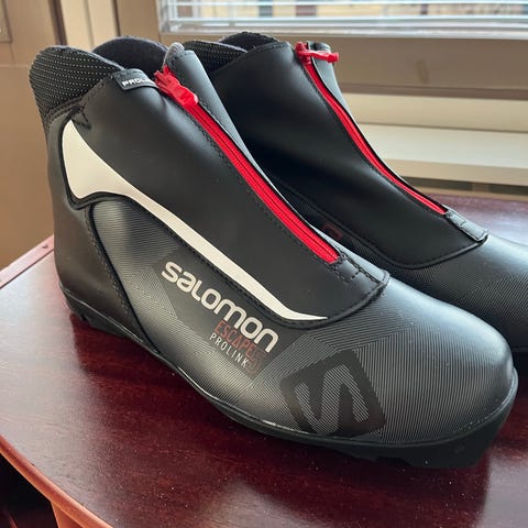 Salomon SNS -hiihtomonot. Monot on tarkoitettu maastohiihtoon SNS-siteille. Väri musta, yksityiskohtina punaisia ja harmaita tehosteita. Monossa on vetoketjullinen päällinen