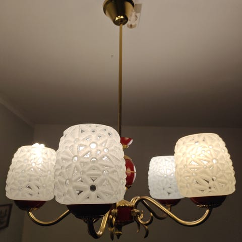 Myydään kultainen kattovalaisin muuton tieltä. Leveys 85cm ilman polttimoita.