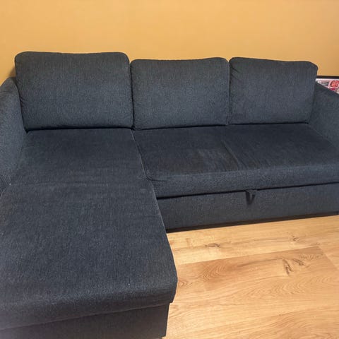 Myydään vähälllä käytöllä ollut harmaa vuodesohva. Sohvan voi levittää vuoteeksi joko yhdelle tai kahdelle. Molemmat puolet avattuna vuoteen pituus 195cm ja leveys n. 150cm. Sohvan toisessa alanurkassa pientä rispaantumista, näkyy kuvissa. Eläimetön ja savuton talous.