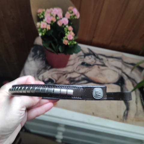 Horzen musta otsapanta koossa full, pituus noin 41cm. Tämä on jo vanhempi, mutta vähän käytetty. Ollut kisasuitsissa ja nyt vikat 10v lämpimässä varastossa. Nahka edelleen pehmeää ja strassit tallella. Hinta 9 euroa sisältäen postikulut kirjeenä.