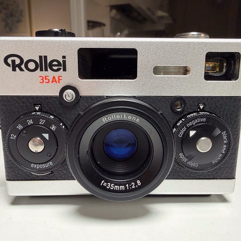 Rollei 35 on 135-kinofilmille tehty pieni - etsinkamera valotusmittarilla. Ensimmäinen Rollei 35 esiteltiin Photokina-näyttelyssä jo vuonna 1966 Saksassa. Rollei 35-sarja on edelleen yksi pienimmistä manuaali suljinajat ja aukot omaavista kinokameroista. Myytävä, siisti, ehjä yksilö on alkupään mallistoa 1970-luvulta. Optiikka on Tessar 40mm f/3.5 made by Tessar. Oheen tulee Rollei BC121 salamalaite ja opaslehtinen.