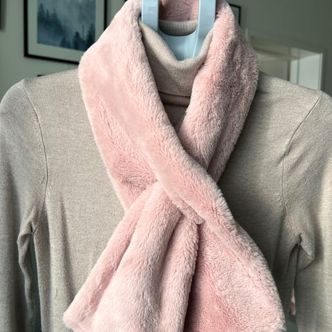 Pehmeää tekoturkista (jäljitelmäkanin turkista), vaaleanharmaa.