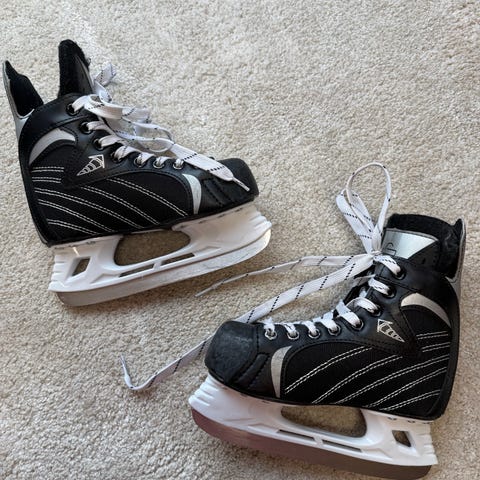 Maple n.15 kertaa käytetyt jääkiekkoluistimet koko 31. Joitain naarmuja, jotka näkyvät kuvassa. Silti hyvässä kunnossa seuraavalle käyttäjälle.