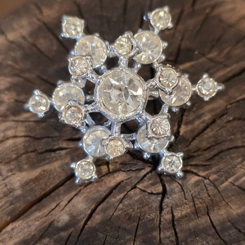 Vintage rintaneula Lumihiutale helmillä