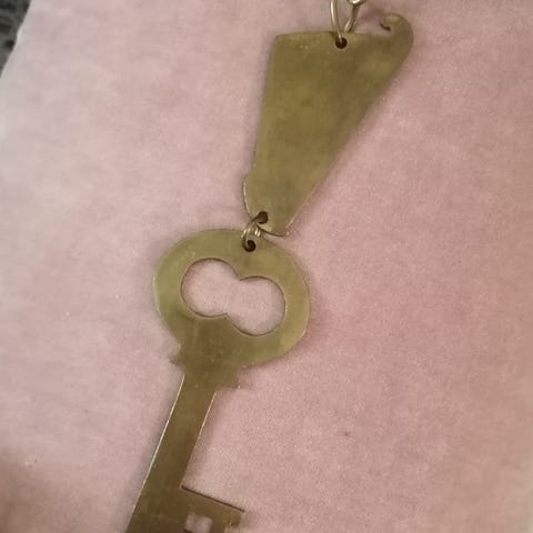 Kansallispuvun vyötäröllä pidettävä kaunis ja vanha messinkinen avainkokka.