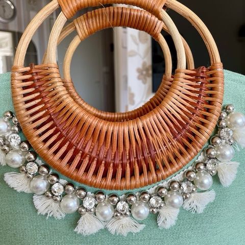 Kaunis kangaskassi jossa turkoosi vuori ja vetoketju.