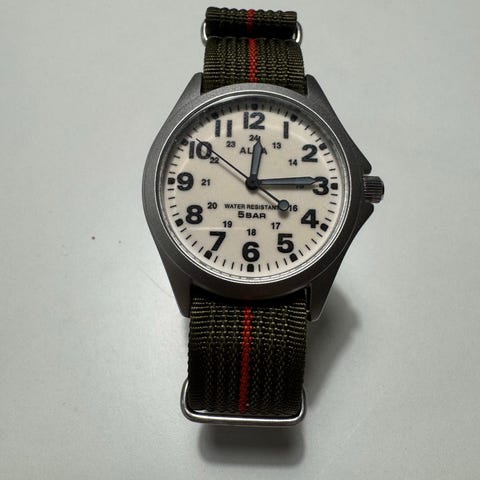 Musta/valkoinen asemakello. Kehikko 40X40cm ja kellon halkaisija 23cm. Toinen puoli pysyy ajassa, toinen edistää 10min vuodessa. Toimii AA pattereilla