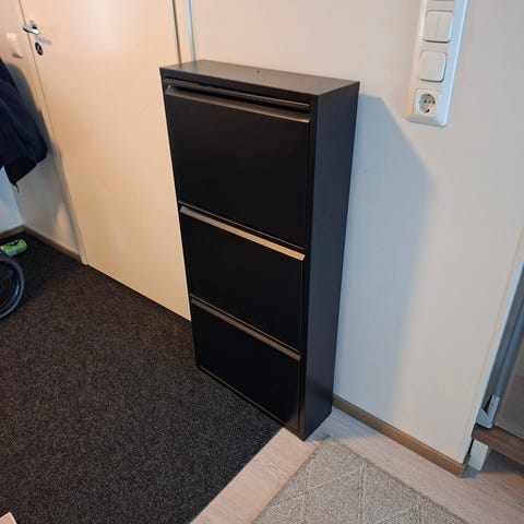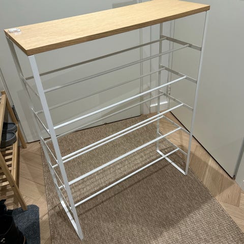 Tower-kenkähyllyn runko on maalattua terästä ja kansi puuta. Jokainen taso kestää 3 kg painon - Nouto Espoonlahdesta