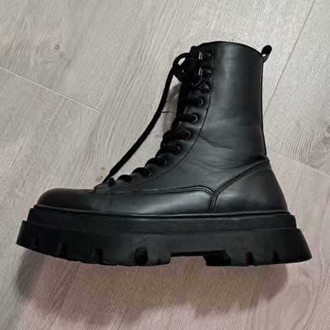 Lähes käyttämättömät mustat nilkkurit. Tekomokkanahkaa. Vain nouto.