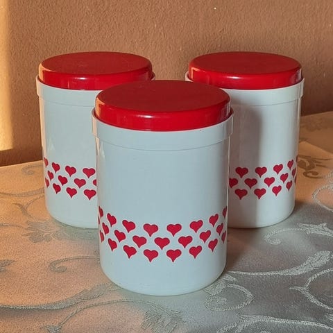 Vanhat säilytyspurkit kaikki ehjiä. Hinta yhteensä 80e /tarjous