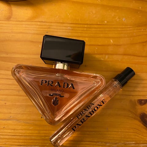 Puoli vuotta sitten ostettu Pradan Candy Eau de Parfum matkakoossa 10 ml. Käyttöaste näkyy kuvista.