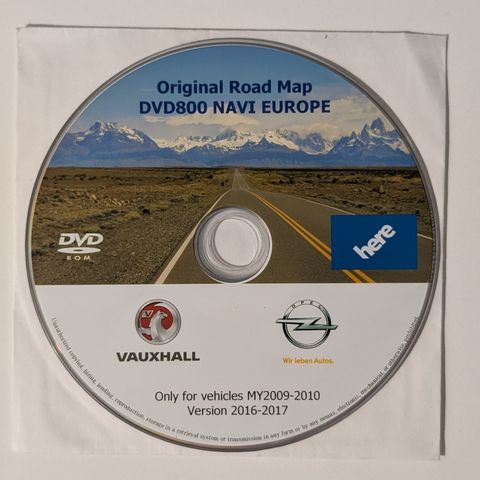 Opel DVD800 navin karttapäivityslevy 2016-2017 | MY09-10, Astra, Insginia jne