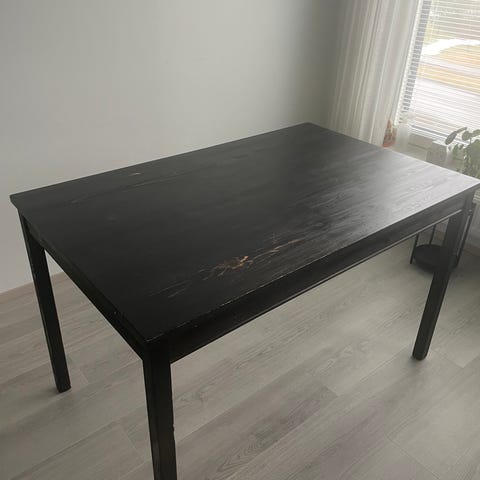 Pöytä purettu osiin. Annetaan osissa. Erittäin helppo kasata.