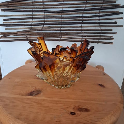 Myydään hyväkuntoinen Pertti Santalahti, Humppila lasikulho. Lev. n. 32 cm, kork. n. 4.5 cm.