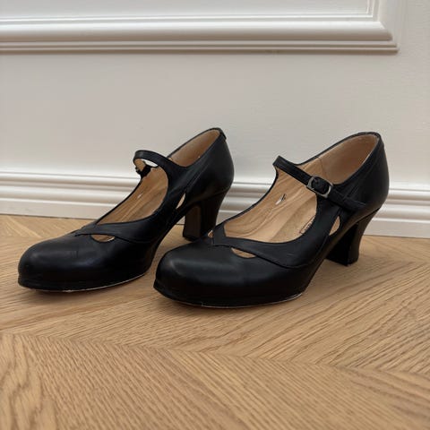 Myydään hyväkuntoiset Begona Cervera flamencokengät, koko 38. Näitä on käytetty suutarilla venytettävänä kärjestä, mutta ovat silti liian pienet minulle. Hinta 60 euroa. Kulkeutuu Aleksiskivenkadun tanssistudiolle maanantaisin tai nouto Alppilasta. Voin myös postittaa. MMM