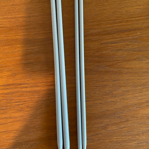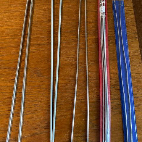 Novita alumiinipuikot pituus 15 cm. Vihertävät 2,5 mm ja punaiset 3 mm. Vain kokeiltu, mutta ei ollutkaan mieleiset.