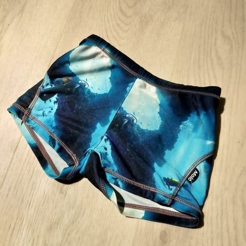 Molo uv uimapaita uudenveroisessa kunnossa, koko 74/80. Hauska kirahvikuvio. Takana vetoketju helpottamassa pukemista, täyspitkät hihat.