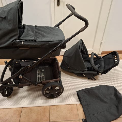 Britax go big yhdistelmävaunut harmaa. Vaunuissa on runko, vaunukoppa vastasyntyneelle sekä istuinosa isommalle lapselle. Pehmeästi topattu vaunukoppa sisältää patjan ja suojapeitteen. Istuinosassa on säädettävä selkänoja, turvavaljaat ja irrotettava turvakaari. Kuomu suojaa lasta ja on käytettävissä sekä kopassa että istuimessa mallista riippuen. Rungossa on neljä pyörää ja tavarakori alaosassa. Vaunut soveltuvat käyttöön vauva-ajasta taaperoikään saakka, kun ensin käytetään vaunukoppaa ja myöhemmin istuinosaa.