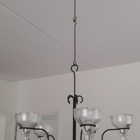 Upea metallinen kynttiläkruunu kynttilöineen. Kauniit somisteet. Jatkokoukun kanssa korkeus n. 100 cm.