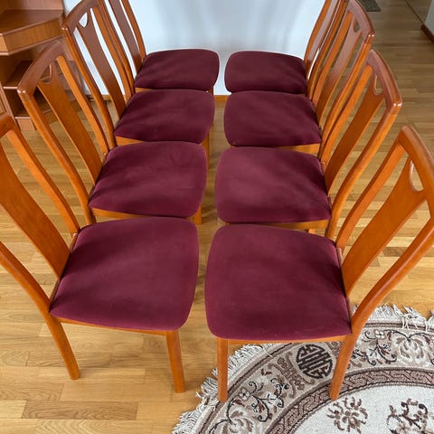 Viisi tuolia on hyvässä kunnossa, yhdessä on pieni korjattu kuluma