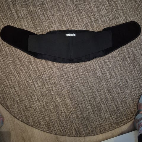 Paketista avattu mutta käyttämätön yhden koon selkätuki.