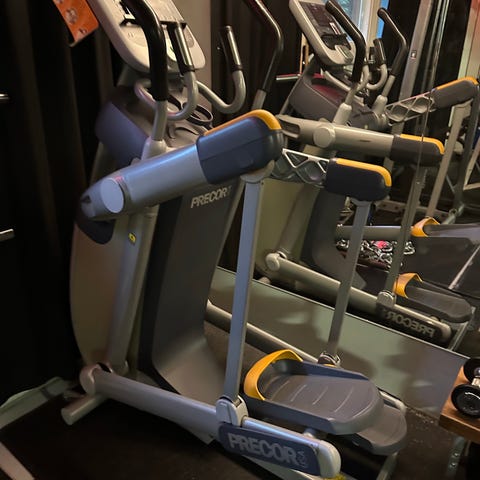 Truefitness crosstrainer, todella järeä vaikka ei ole uusi, toimii ilman sähköjohtoa. Kuntopyörä myös mukaan.
