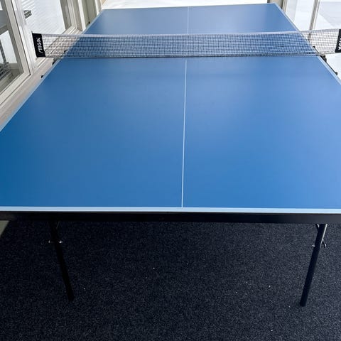 Stiga Privat Roller pingispöytä sisäkäyttöön. Mallissa on sininen pelipinta ja valkoiset rajaviivat. Pöytä on kaksiosainen ja taittuu pystyyn säilytystä varten. Alustassa on lukittavat pyörät siirtämistä helpottamaan. Pöydän reunoissa ja pelipinnassa on kulumaa ja naarmuja, jotka näkyvät kuvissa. Valmistettu Saksassa (Made in Germany). Sopii pöytätenniksen pelaamiseen kotona, kerhotiloissa tai muissa sisätiloissa.