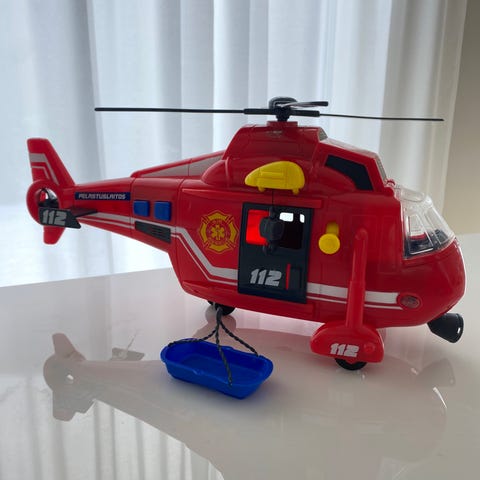 Myydään kuvien mukainen leluhelikopteri. Leikitty ja käytön jälkeä löytyy, en ole täysin varma ovatko kaikki alkuperäiset osat tallessa, mutta myydään siinä kunnossa kuin kuvissa näkyy. Helikopterissa on toimivia ääniä. Näyttävä lelu, joka toimii edelleen mainiosti.