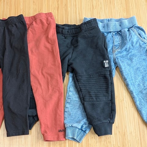 Myydään uudenveroinen housupaketti, kaikki sopinut tytölle koossa 92 mutta oikeastaan vain harmaita trikoita käytetty. Muut jäivät pieneksi kaapin pohjalle eli mitkään housut eivät juuri uudelle häpeä. Kukallisissa lukee 86 mutta mennyt 92 koossa, Finlaysonin lintuhousuissa lukee koko 74/80, mutta aivan ylisuuret niin pienelle ja vastaavat ennemmin 92.