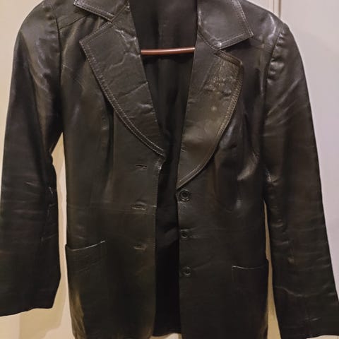Hyvässä kunnossa säilynyt nahkatakki 80-luvulta. Biker malli, mutta aikansa tyypillisellä siluetilla. Nouto Helsingin Kalliosta. Maksu käteisellä tai MobilePaylla. HUOM! Koiratalous.