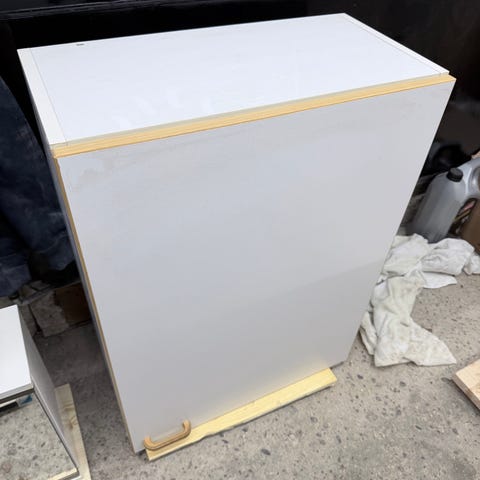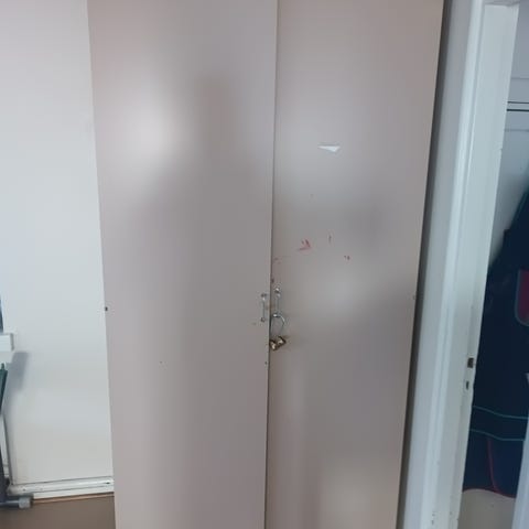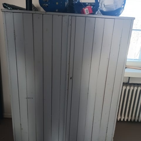 Valkoinen kaappi hyllyillä