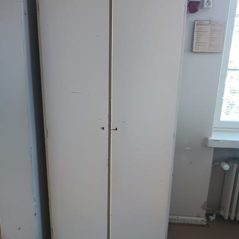 Valkoinen kaappi, jossa useita hyllyjä säilytystä varten. Kaappi sopii esimerkiksi kodin, toimiston tai varaston säilytysratkaisuksi. Materiaalina maalattu levy tai vastaava. Kaapissa on ovet ja sisällä säädettävät tai kiinteät hyllytasot erilaisten tavaroiden järjestämiseen.
