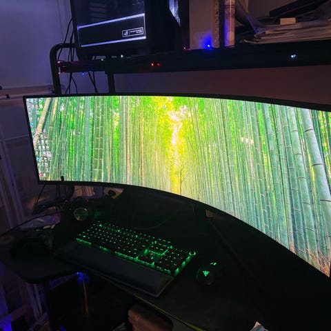 Kaareva 49 tuuman kvanttipiste-OLED-pelinäyttö tarjoaa huippuluokan tarkkuuden ja laajan väriskaalan.