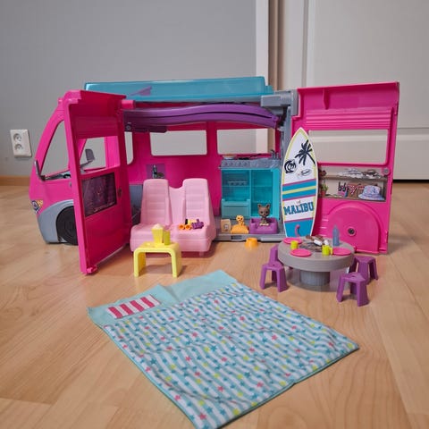 Barbie laiva. Mukaan tulee 2 tuolia ja leikki ruokia jotka kuuluvat laivan kalusteihin. Kulkee Kouvola Helsinki välillä.