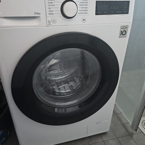 Siisti ja toimiva LG musta pyykinpesukone. 10kg pyykille ja koneessa on myös kuivaava toiminto