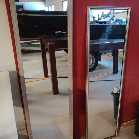 Peilin korkeus 91cm ja leveys 60cm. Toisessa sivussa kolme pientä ruuvin reikää, jossa ollut ledvalot. Pientä kuluma jälkeä reunoissa.