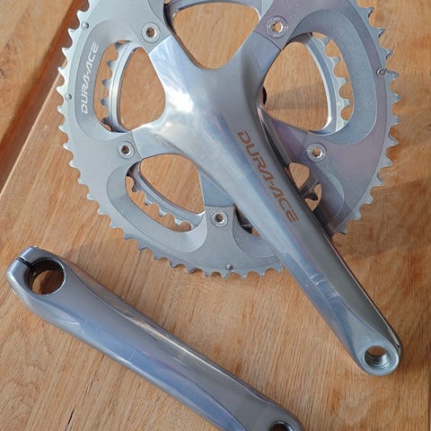 Shimano XTR 2x11 kampisarja. Pituus 175mm 36 ja 26 rattailla. Pieniä pintanaarmuja ketjun putoamisesta johtuen, mutta ei mitään isompia kolhuja. Naarmut näkyy kuvissa ja näyttää kuvissa paljon pahemmalta kun oikeesti ovatkaan.