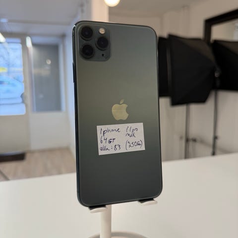 Apple iPhone 11 Pro älypuhelin, tallennustila 64 GB. Laitteessa on suuri kosketusnäyttö ja kolmella takakameralla varustettu kamerajärjestelmä. Rungossa on metallinen kehys ja lasinen etu- ja takapinta. Sopii nano-SIM-kortille ja tukee yleisiä älypuhelinominaisuuksia, kuten internet-selausta, sovelluksia ja valokuvausta.