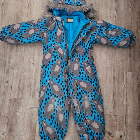 Ihana, lämmin ja muhkea talvihaalari kokoa 104. Kaunis eläinkuvio, siisti kunto.
