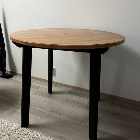 Ikean valkoinen kahdenhengen ruokapöytä, metallijalat irrotettu, joten helppo kuljettaa