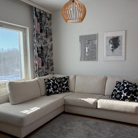 Myydään 3vuotta käytössä ollut divaanisohva. Tavallista käytössä tullutta kulumaa mutta ehjä ja siisti sohva edelleen. Reunoissa on pientä nukkaantumista ja kangas ”löystynyt” yhdestä kohdasta hieman.