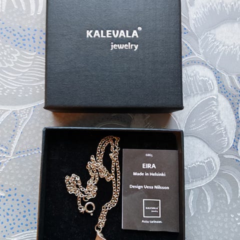 Kalevala Made In Helsinki Eira riipus hopea (kuva missä näkyy laatta). Vähän käytetty. Hopeaketjun pituus näkyy kuvassa.